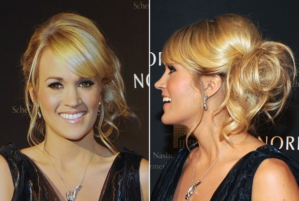 Assim como o rabo de cavalo, o coque lateral é um charme. Penteie a franja para um dos lados, faça um rabo de cavalo baixo e enrole-o formando um coque.